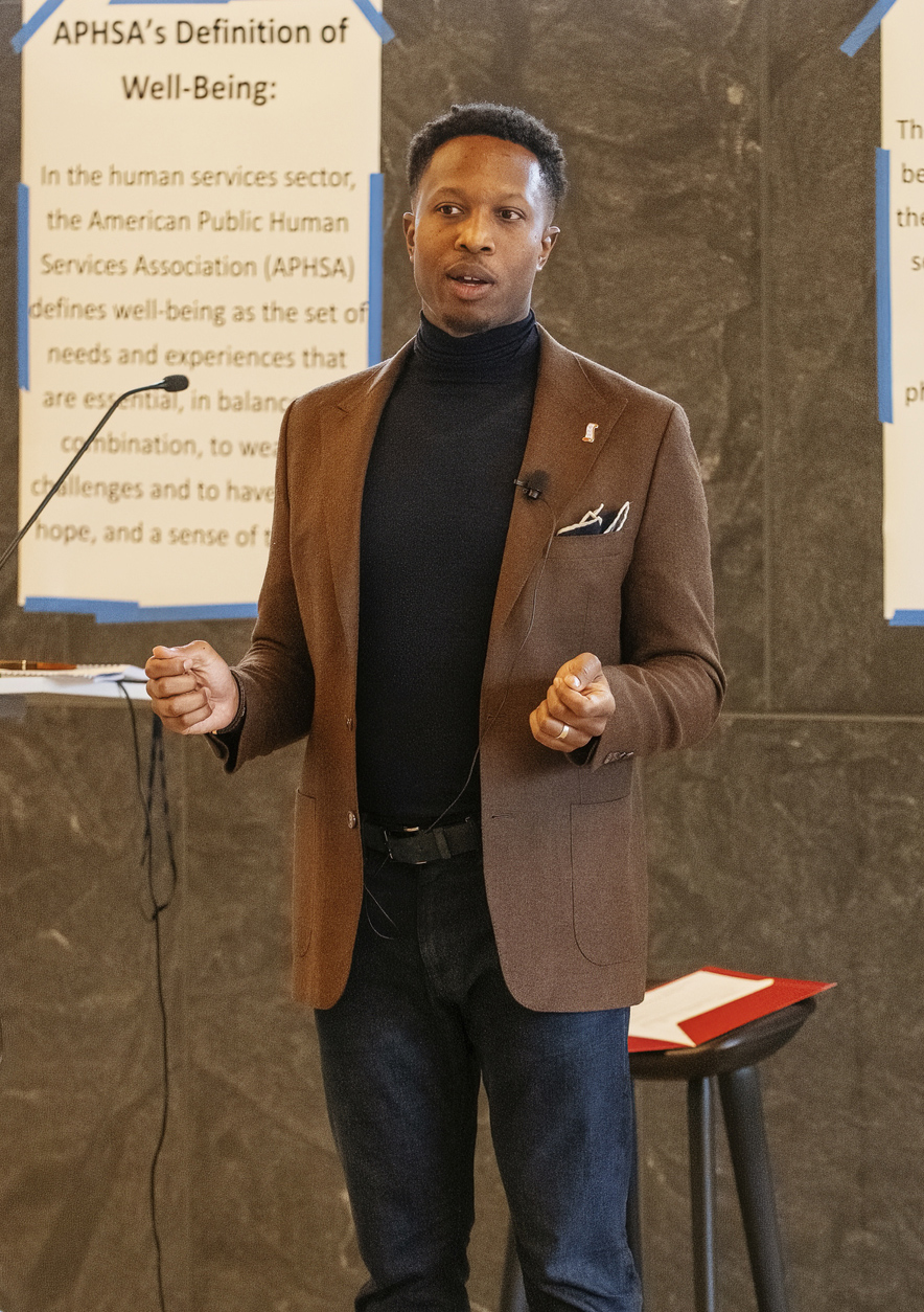 Harvard Business School Professor Hise Gibson presenting at the 2024 Frontline Innovators convening at Harvard University.Throughout the year, cohort members also worked together virtually via APHSA’s community of practice THRIVE. They shared take-aways from each convening, offered insights and reflections on wellbeing, provided policy and practice recommendations to accelerate 2Gen approaches, and shared strategies, techniques, tools, and ideas to advance multi-generational family social and economic success. In addition, several cohort members participated in interviews to advance the cohort-wide initiative.